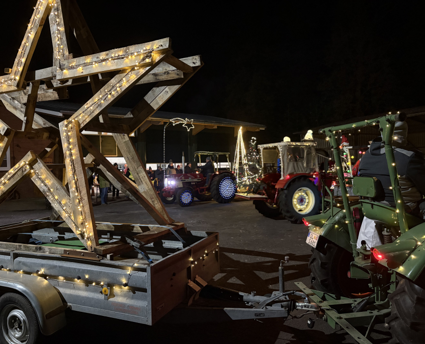 Kai de BarseAm 21. November findet unser diesjähriges Laternelaufen statt. Auch die weihnachtlich dekorierten Oldtimer-Traktoren werden wieder dabei sein.